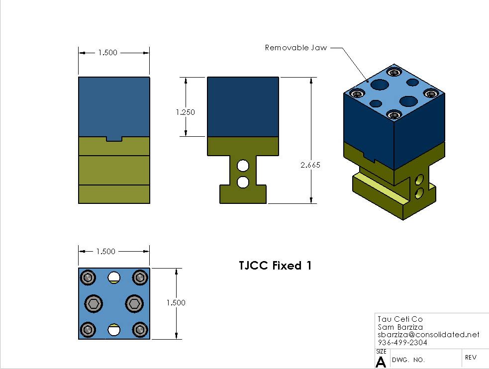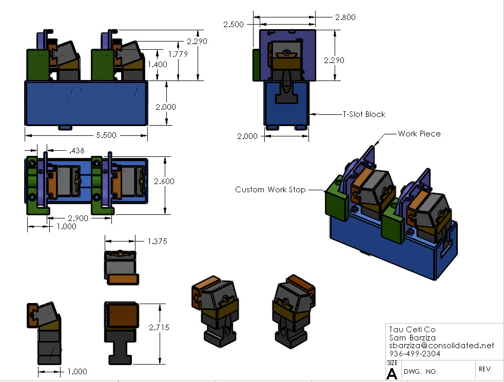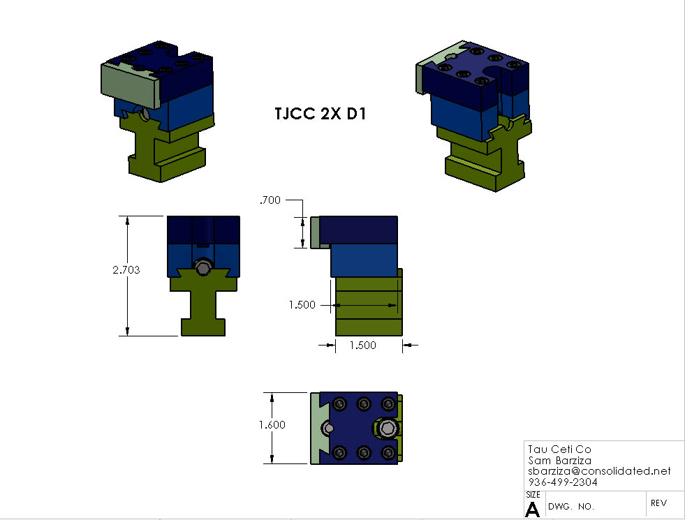 A Pat. Pend.Workholding suite of various clamping components for high density, super high density and unusual workholding requirements. T-Slot Blocks and T-Jaw Clamping Components offer a unique capability for hard to hold jobs. Combining T-Slot Blocks (as the building base) to the T-Jaw Clamping Components, you can customize your work the way you need to. Whether its high density workholding or conventional multipart workholding, the benefits and advantages of this amazing combination of T-Slot Blocks and T-Jaw CC are endless. Harness your clamping capability, with your own existing off the shelf components to their maximum capability, by using T-Jaw Carriers. Numerous sizes and styles of T-Jaw Clamping Components, T-Jaw Carriers are available. In these web pages a few examples are provided.